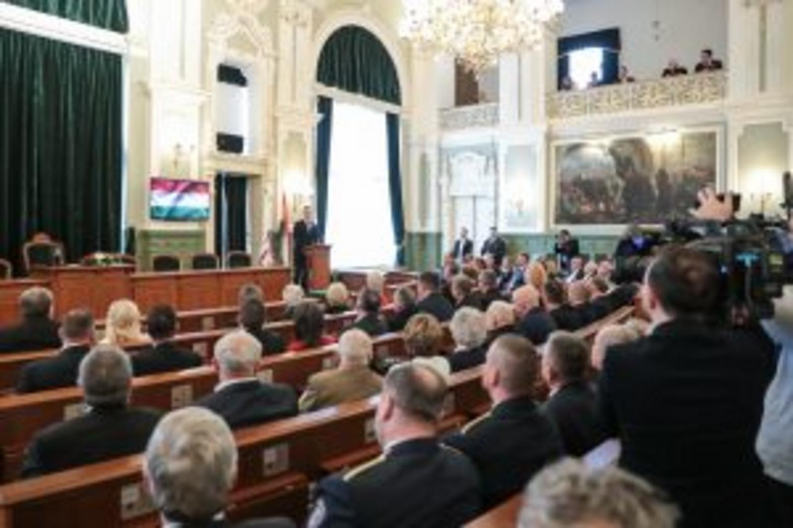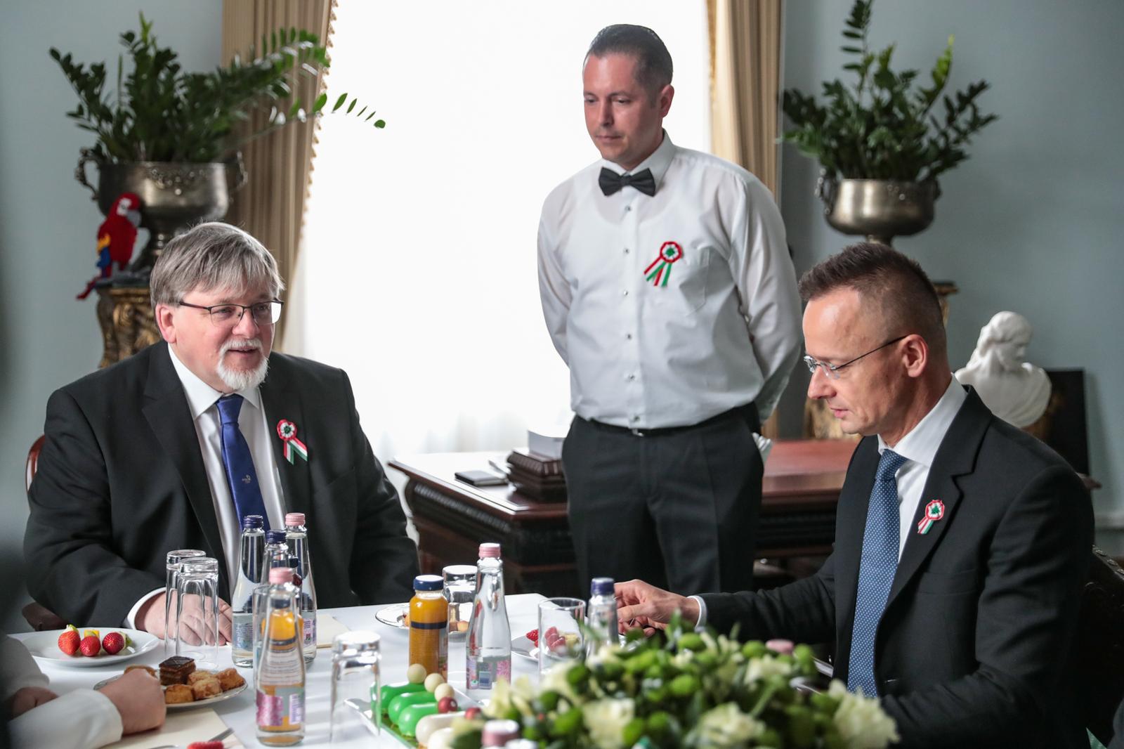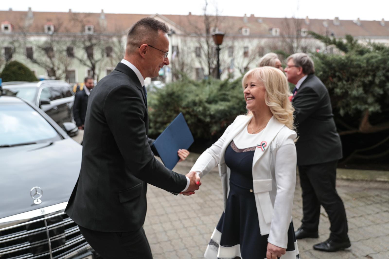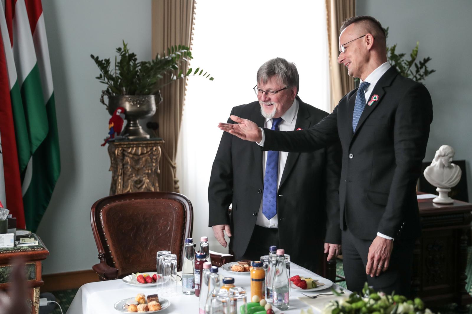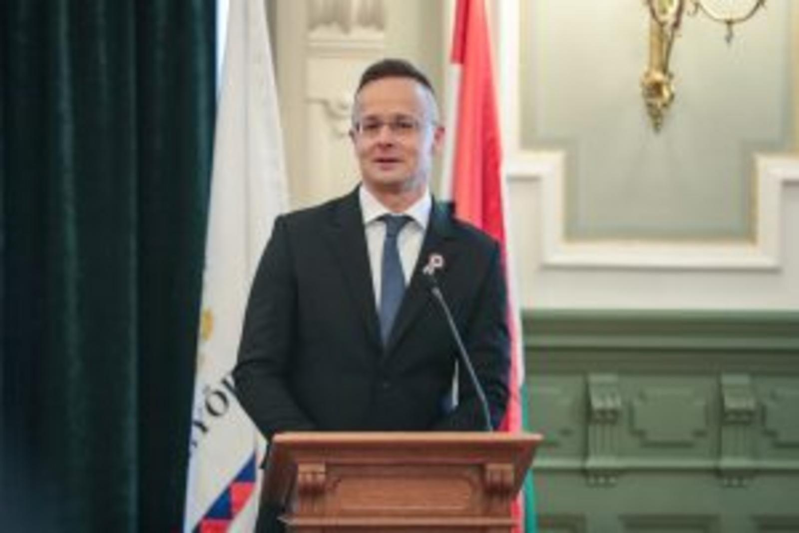 „Szeretném megköszönni ezt a hatalmas megtiszteltetést, hogy ma itt állhatok önök előtt mint a győri díszpolgári cím büszke birtokosa. A díszpolgári cím viselése nemcsak régen, hanem most is egy hatalmas megtiszteltetés. És érdemeimen felül is van, ezt el kell mondjam, úgyhogy ezt legalább annyira tekintem elvárásnak a jövőre nézve is, mint ahogy a múltra vonatkozó méltatásom is elhangzott” – kezdte beszédét Magyarország külgazdasági és külügyminisztere, országgyűlési képviselő.
