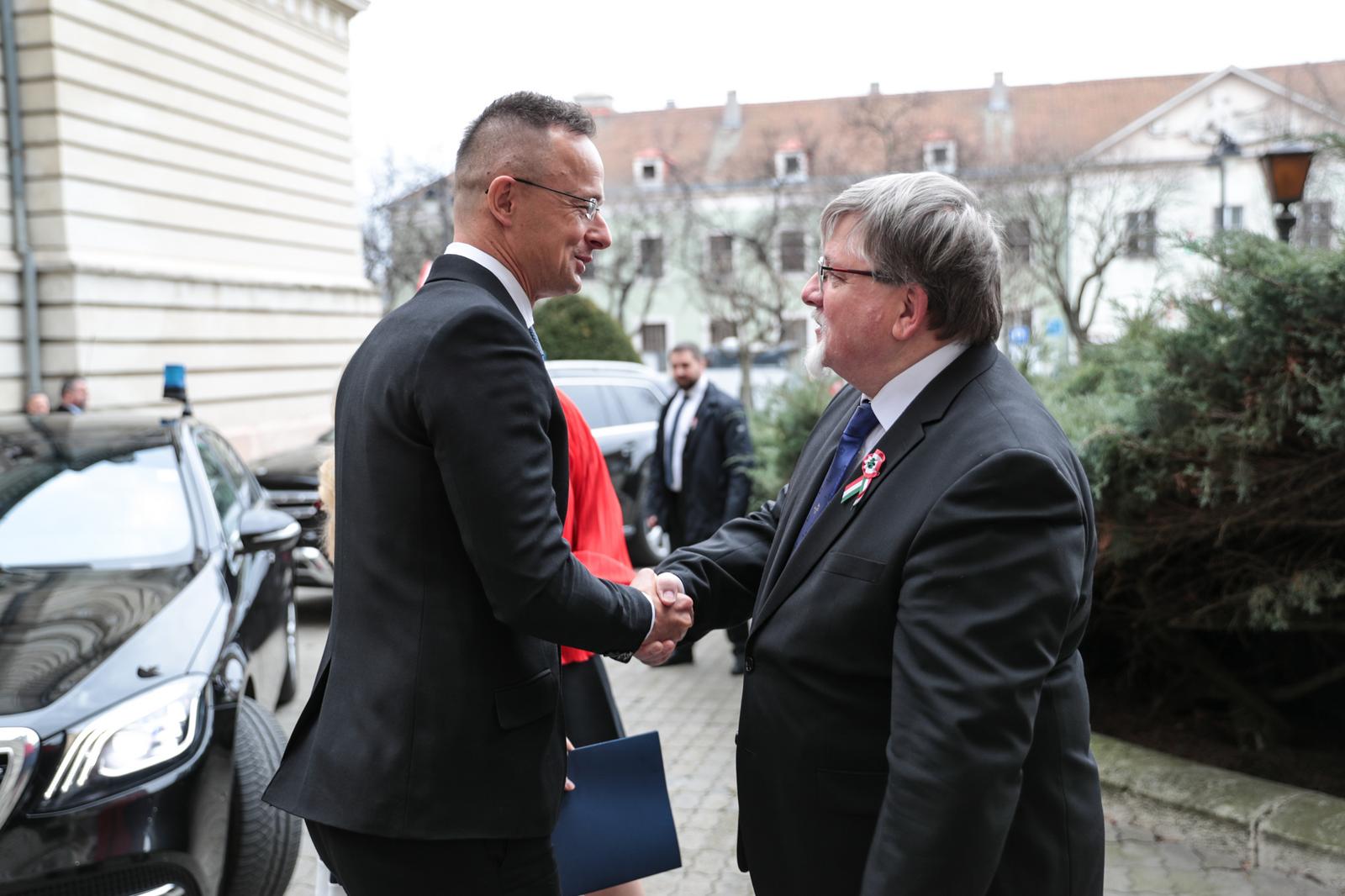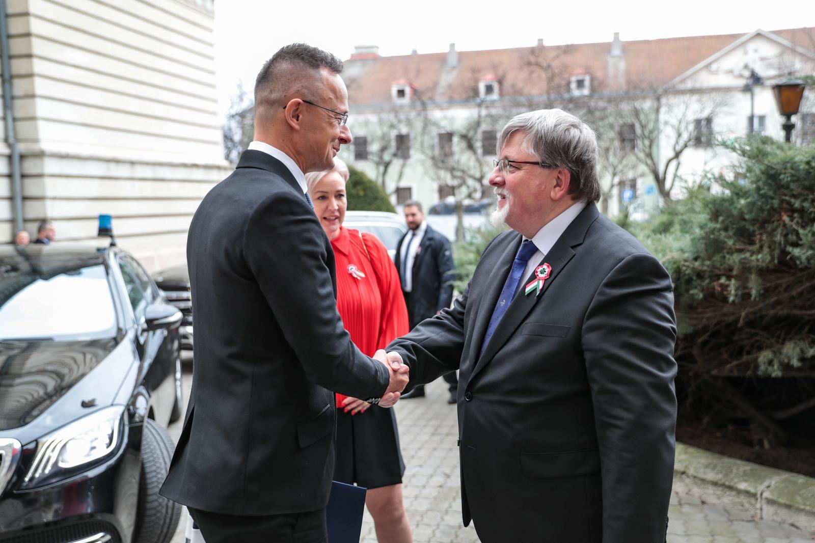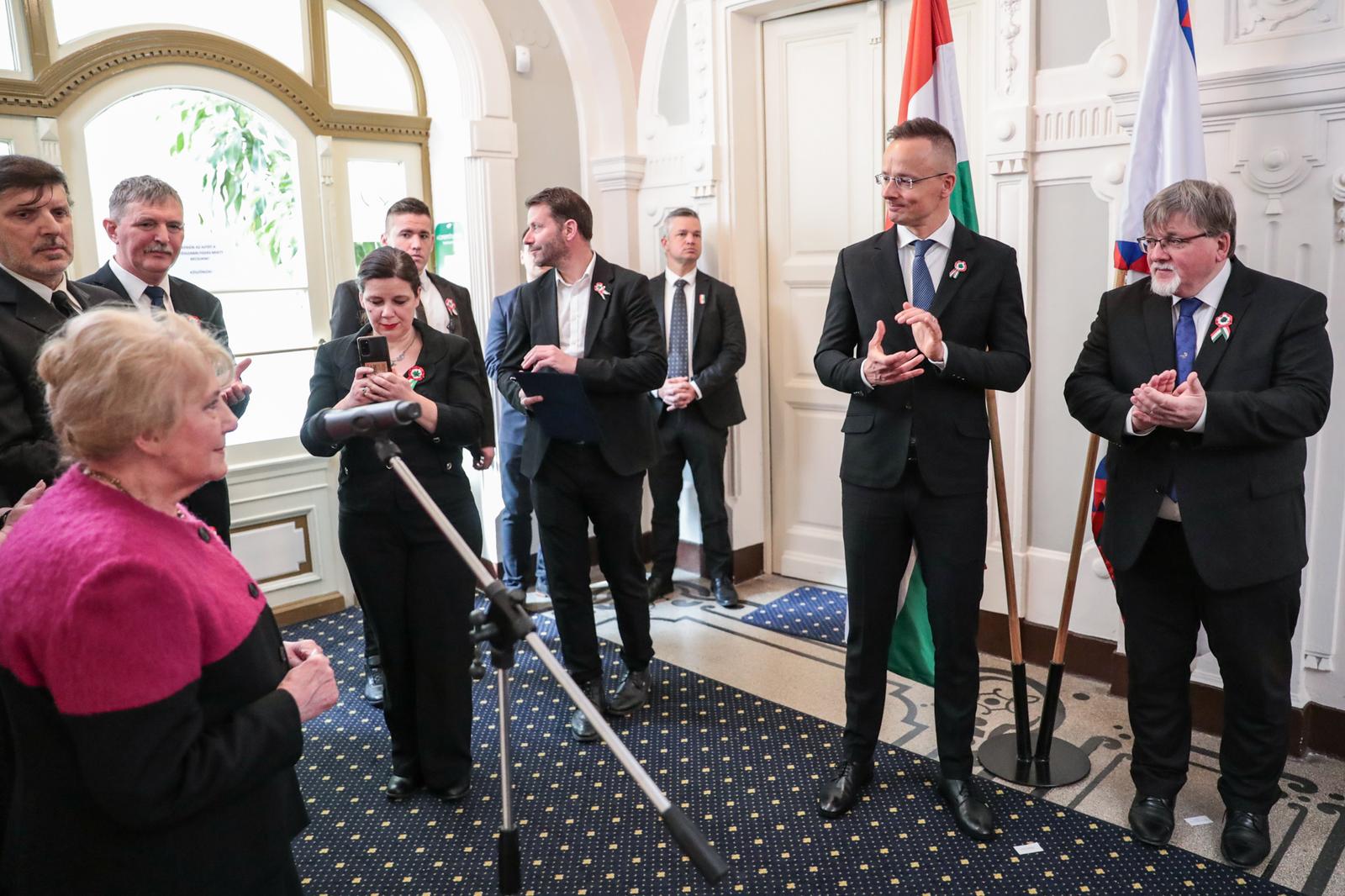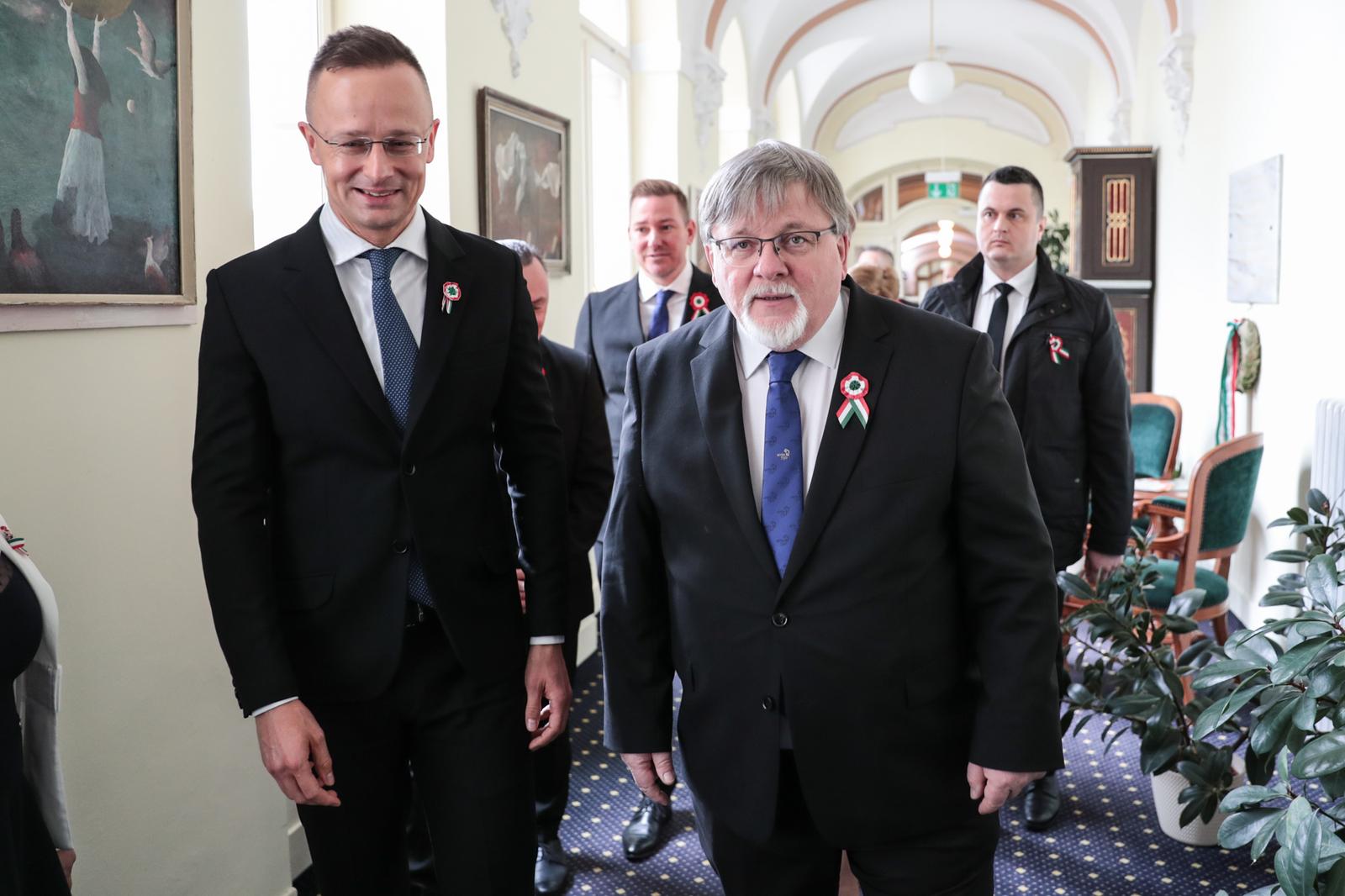 Magyarországnak olyan kormánya van, amely 1848 szellemében vezeti Magyarországot, egy olyan kormány, amely számára a szabadság és a nemzeti függetlenség a legfontosabb. Legyünk büszkék arra, hogy magyarok vagyunk, hogy egy olyan nemzet vagyunk, amely mindig is kész volt harcolni a szabadságáért, mindig is kész volt kiállni a szuverenitásáért, és legyünk büszkék arra, hogy egy olyan nemzet tagjai vagyunk, amelynek olyan hősei vannak, mint a márciusi ifjak – zárta beszédét Szijjártó Péter.