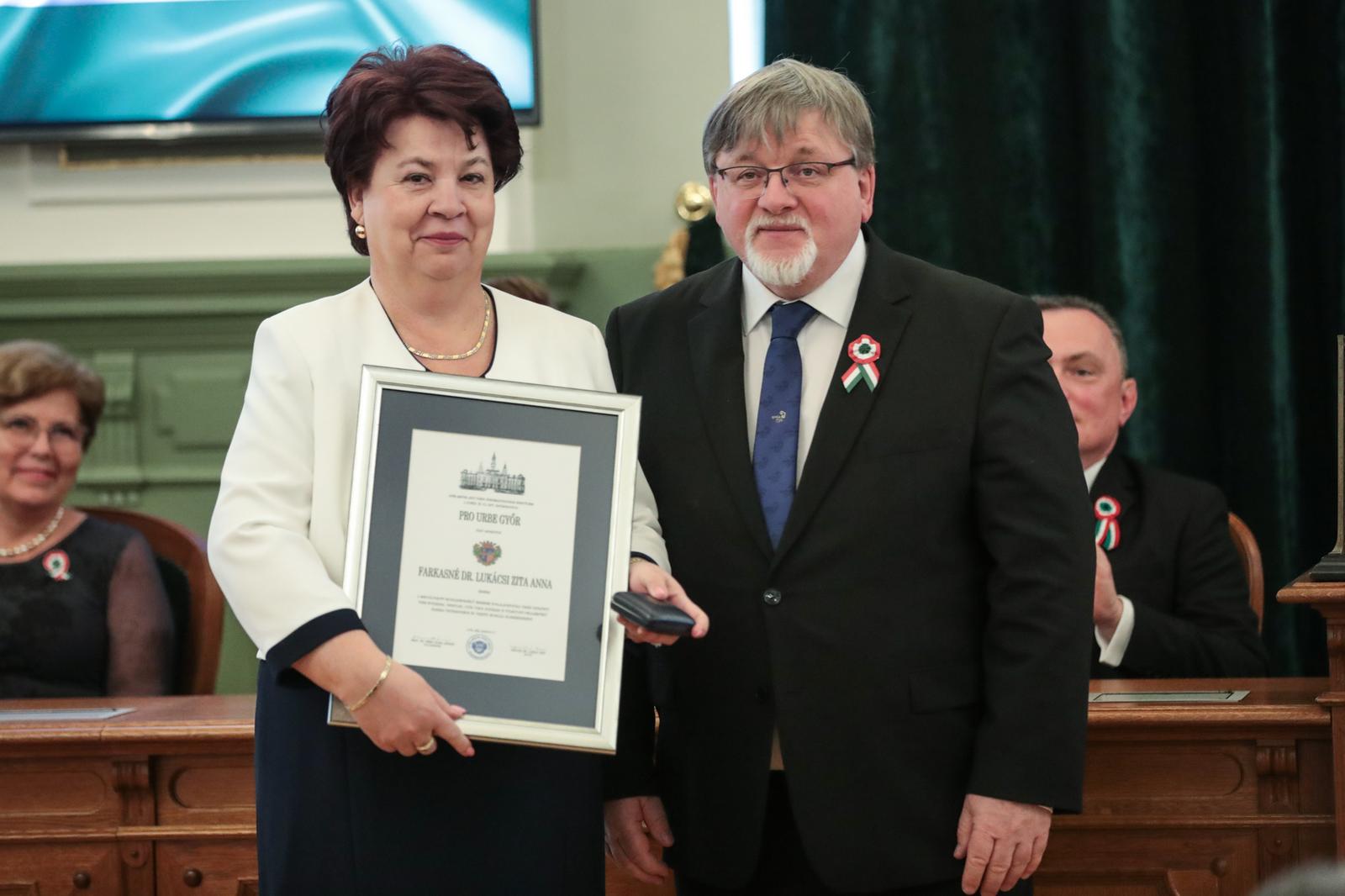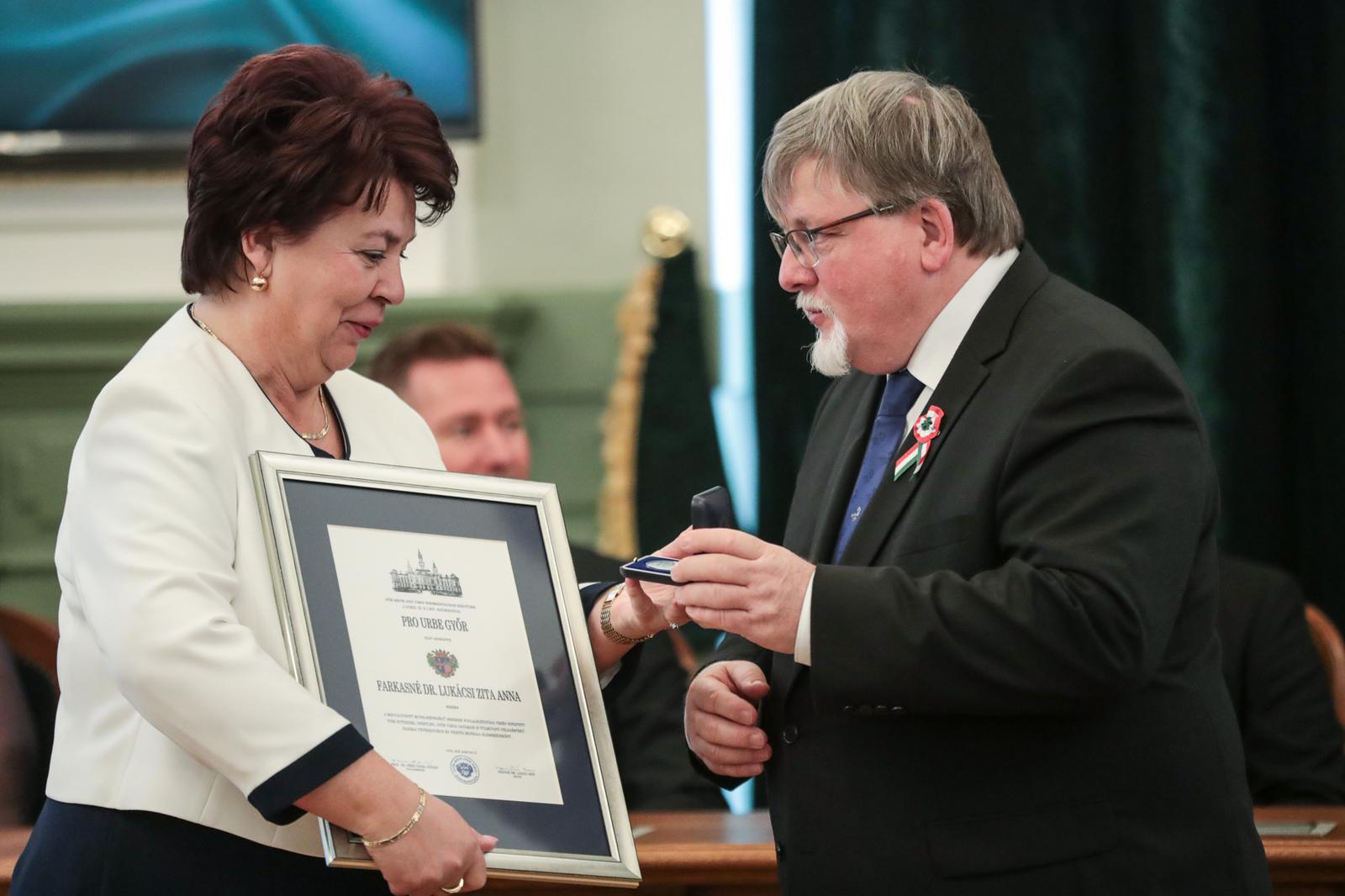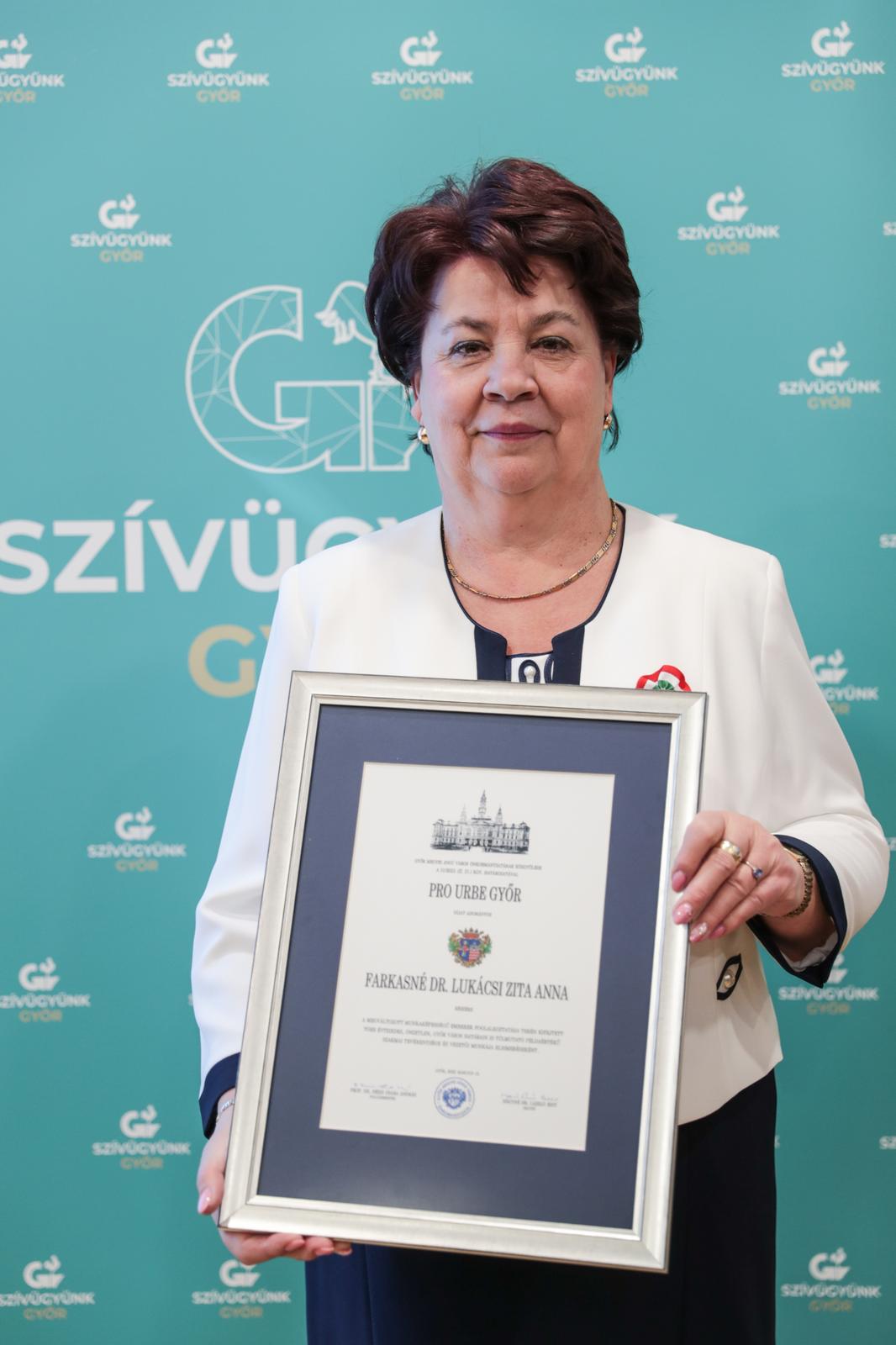 Farkasné dr. Lukácsy Zita Anna is Pro Urbe díjban részesülta megváltozott munkaképességű emberek foglalkoztatása terén kifejtett több évtizedes, önzetlen, Győr város határain is túlmutató példaértékű szakmai tevékenysége és vezetői munkája elismeréseként.