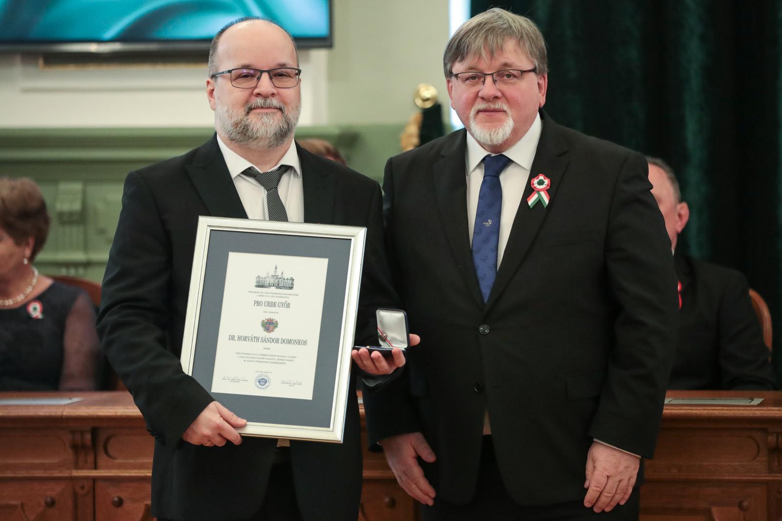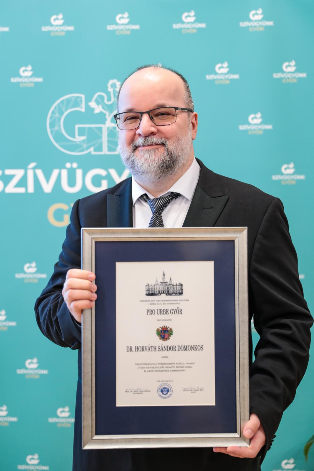 Pro Urbe díjas lett dr. Horváth Sándor Domonkos, aki több évtizedes kiváló intézményvezetői munkája, valamint a város kulturális életét gazdagító, értékes szakmai és alkotói tevékenysége elismeréseként vehette át a díjat.