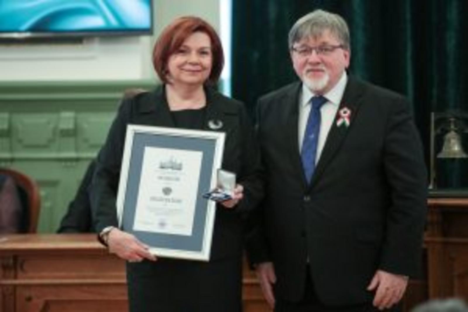 Szöllősi Zoltánné részére is Pro Urbe díjat adományozott a közgyűlés, több évtizedes kiváló pedagógusi és intézményvezetői munkája, valamint a Győri Nádorvárosi Ének-zenei Általános Iskola nevelési feladatainak fejlesztése terén elért eredményei elismeréseként.