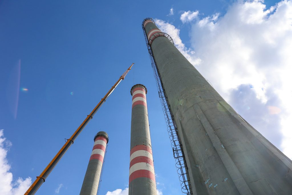 A 101 méteres kémény romtalanítását a szolgáltató már 2024. év végén elvégeztette, a két 80 méteres kémény romtalanítására idén kerülhetett sor, ez a tevékenység jelenleg is folyik. A munkák során a fellazult betonszerkezeteket eltávolítják (romtalanítás), ugyanakkor a középső kéményből egy rövid, rossz műszaki állapotú szakaszt is visszabontanak. A felújítás keretében megújul a két 80 méteres kémény villámvédelmi rendszere is.