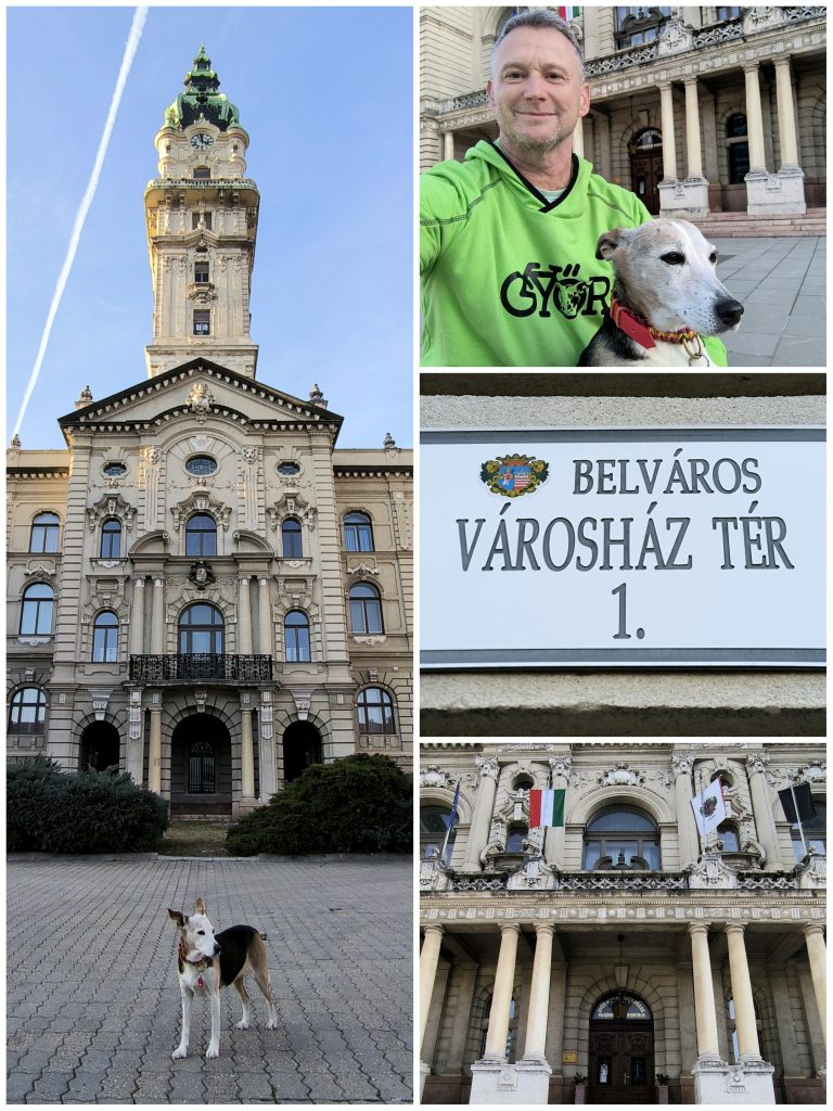 Csupán néhány lépést kellett megtennünk, és máris Győr legközpontibb elhelyezkedésű terén, illetve az azt uraló épület előtt találtuk magunkat.