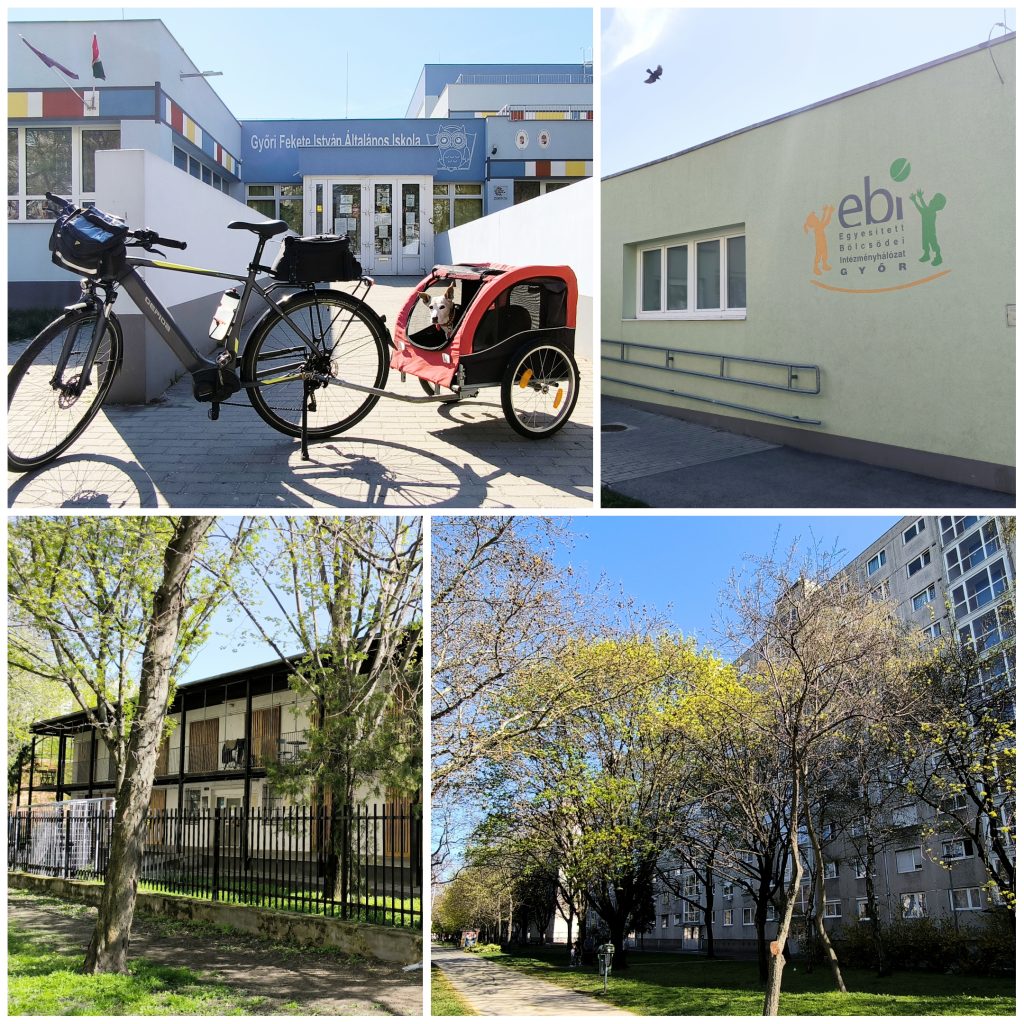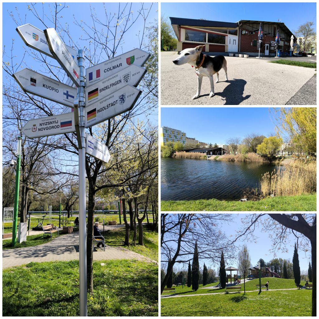 Igyekeztünk felfedezni a meglehetősen nagy kiterjedésű zöldterületet, melyre kiváló lehetőséget nyújtanak a sétautak. Mindjárt a kiindulópontjuknál áll egy különleges tábla Győr testvérvárosainak nevével, címerével és földrajzi távolságával. Közülük, az akár kerékpárral is kényelmesen megközelíthető Dunaszerdahely neve tűnt fel elsőként. Meg is jegyeztem magamnak, de ez már egy másik történet…