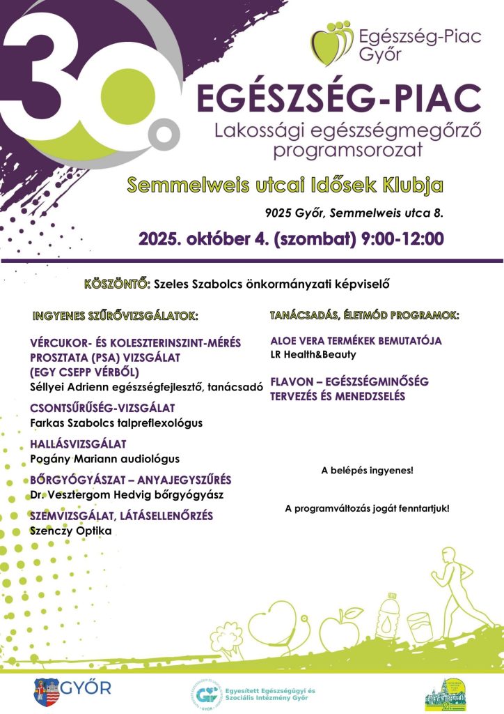 Október 4. szombat 9.00-12.00: Semmelweis utcai Idősek Klubja – Győr, Semmelweis utca 8.