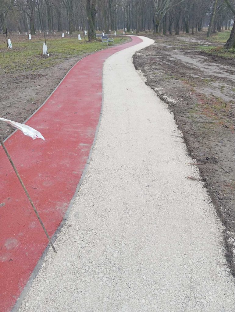 A sportolási lehetőség biztosítása érdekében a lezárást megelőzően a futópálya mellett ideiglenes, murva burkolatú nyomsávot alakítottak ki.